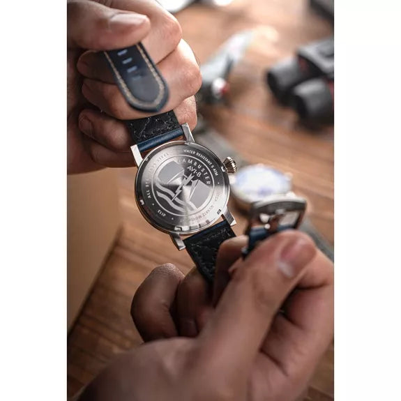 Ein Zeitmesser, der Roy Chadwick Tribut zollt, dem visionären Flugzeugkonstrukteur der Firma Avro, dessen entscheidende Beiträge zum Erfolg des Dambusters Raid während des Zweiten Weltkriegs eine entscheidende Rolle spielten. Chadwicks visionäre Ideen, einschließlich der Entfernung des mittleren oberen Geschützturms, um den Luftwiderstand zu verringern, waren entscheidend für den Erfolg der Operation Chastise.