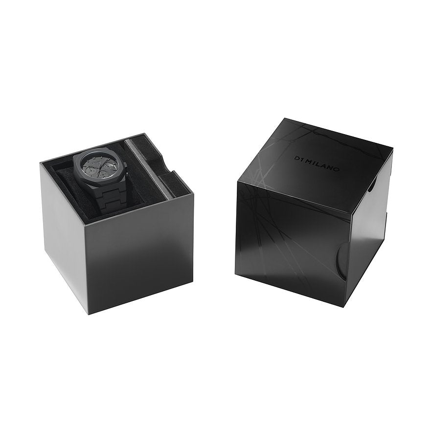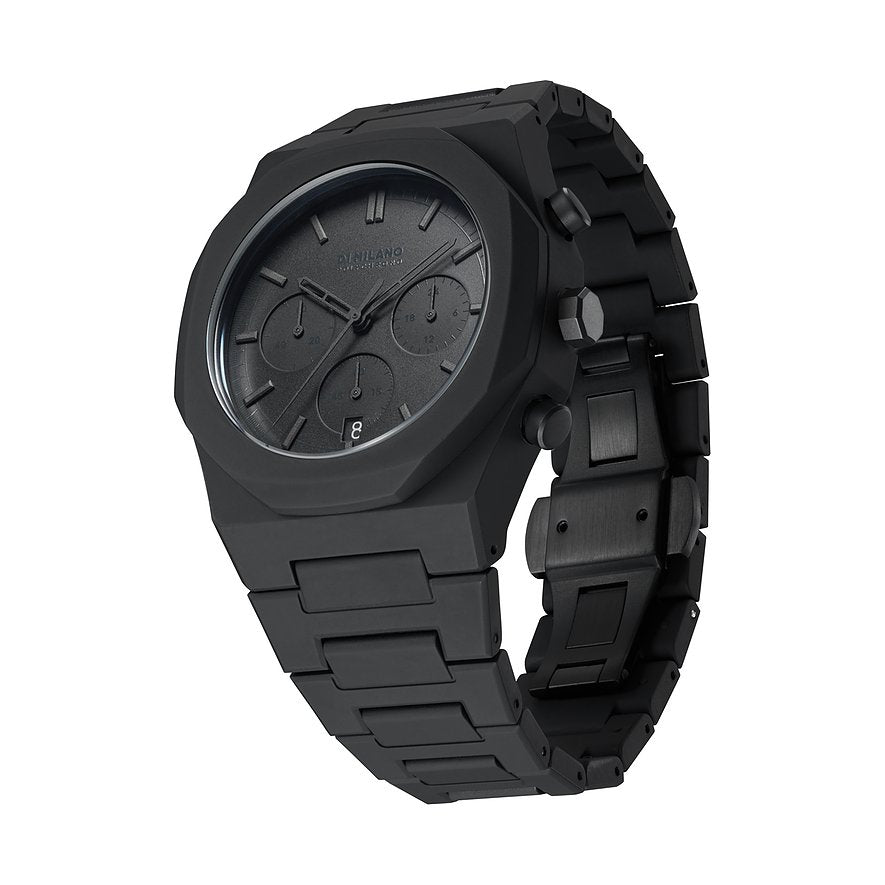 Ton in Ton: Sowohl das Gehäuse und das Armband als auch das Ziffernblatt sind einheitlich in Schwarz gehalten, was der D1 Milano PHBJSH eine ganz besondere Note verleiht.