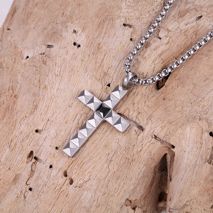 Mit Kastenkette aus Edelstahl und einem Pyramidenkreuz-Anhänger